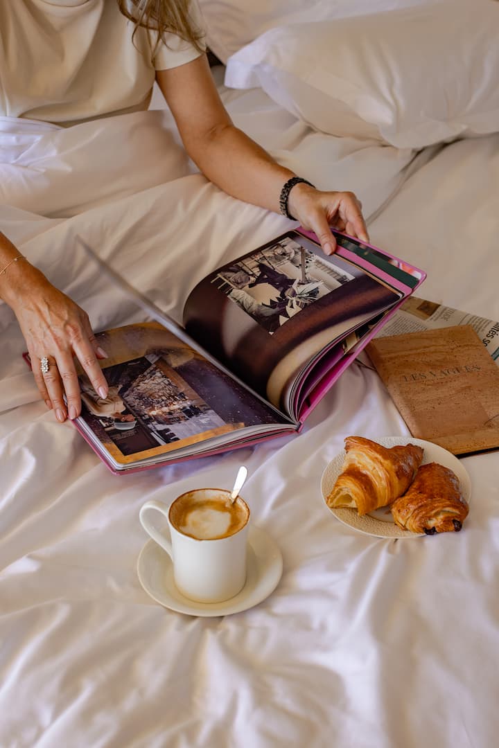 Chaque client peut profiter pleinement du confort de sa chambre ou de sa terrasse en se faisant livrer un plateau pour le petit-déjeuner, le déjeuner ou le dîner. Notre service en chambre est proposé 24h/24h avec une carte délicieusement préparée par le Chef de cuisine afin de répondre à toutes vos demandes.